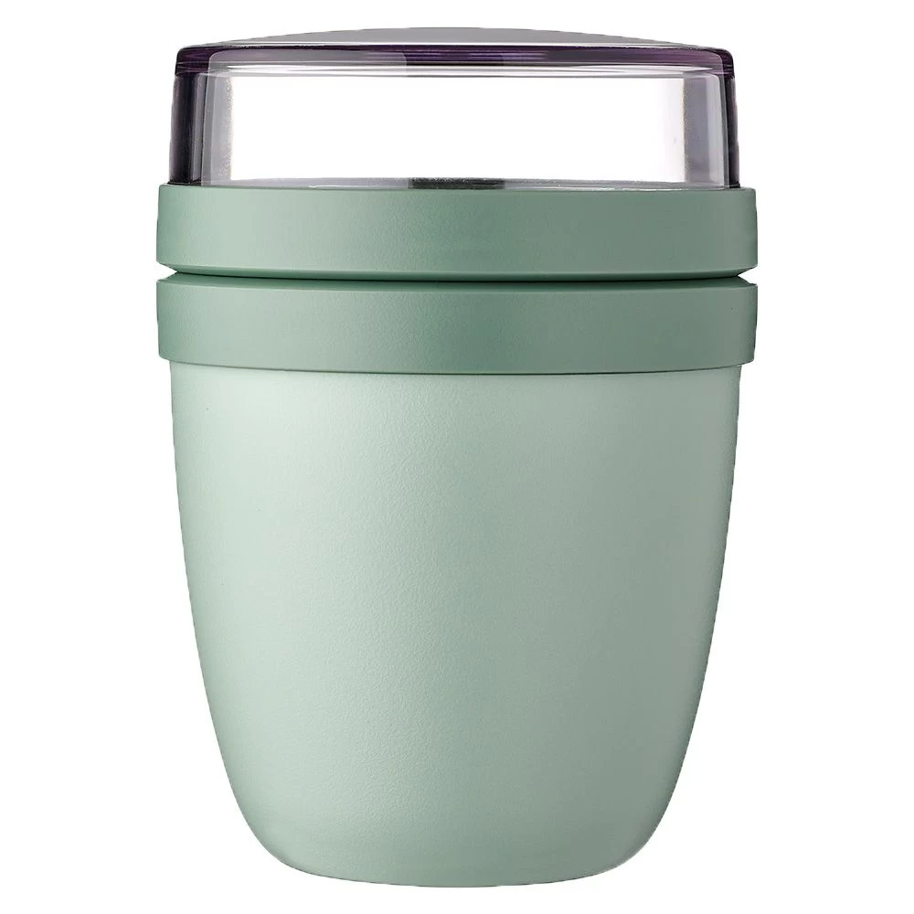 De Mepal Ellipse Mini lunchpot bestaat uit twee compartimenten. Het kleine vak is doorzichtig en heeft een inhoud van 120 milliliter. Hierin kunt u muesli, kleine stukjes fruit of andere ingrediënten in doen. Het grote vak heeft een inhoud van 300 milliliter en is magnetronbestendig. Zo kunt u pasta’s, soep of andere heerlijke gerechten meenemen en warm maken. Door de twee losse compartimenten kunt u de lekkerste mixen maken, terwijl alles netjes gescheiden blijft. Deze pot is lekvrij en ideaal om mee te nemen naar werk of school.